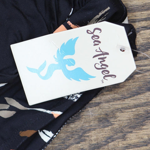 You'll never want to leave the beach this summer with the Cross-Back Bikini Top from Sea Angel. This women’s swim top features a leaf print design on black with a cross-back for a cute look that's perfect for relaxing summer days on the beach. Durable fabric ensures a long-lasting, comfortable wear, and it’s made with added spandex for improved mobility. Sewn-in cups offer extra coverage and comfort so you can look and feel your best all summer long.