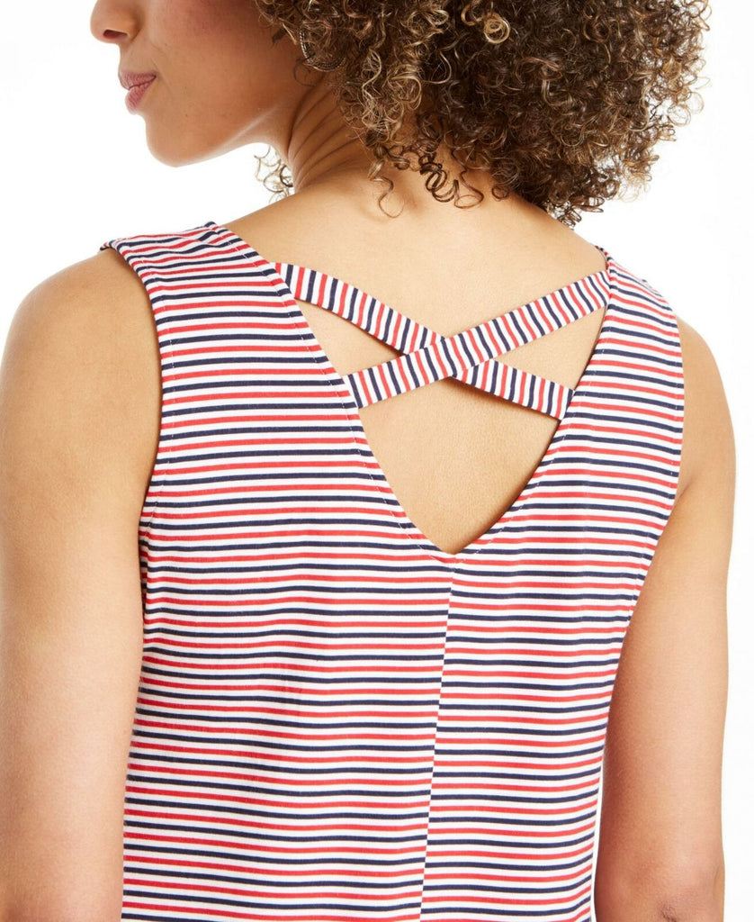 Style & Co.'s petite swing dress features a sweet criss-cross back detail and bold prints.