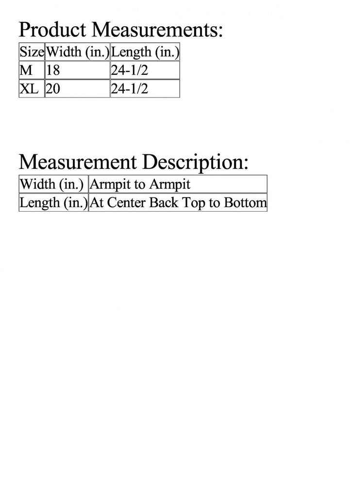 | Length (in.) | At Center Back Top to Bottom |