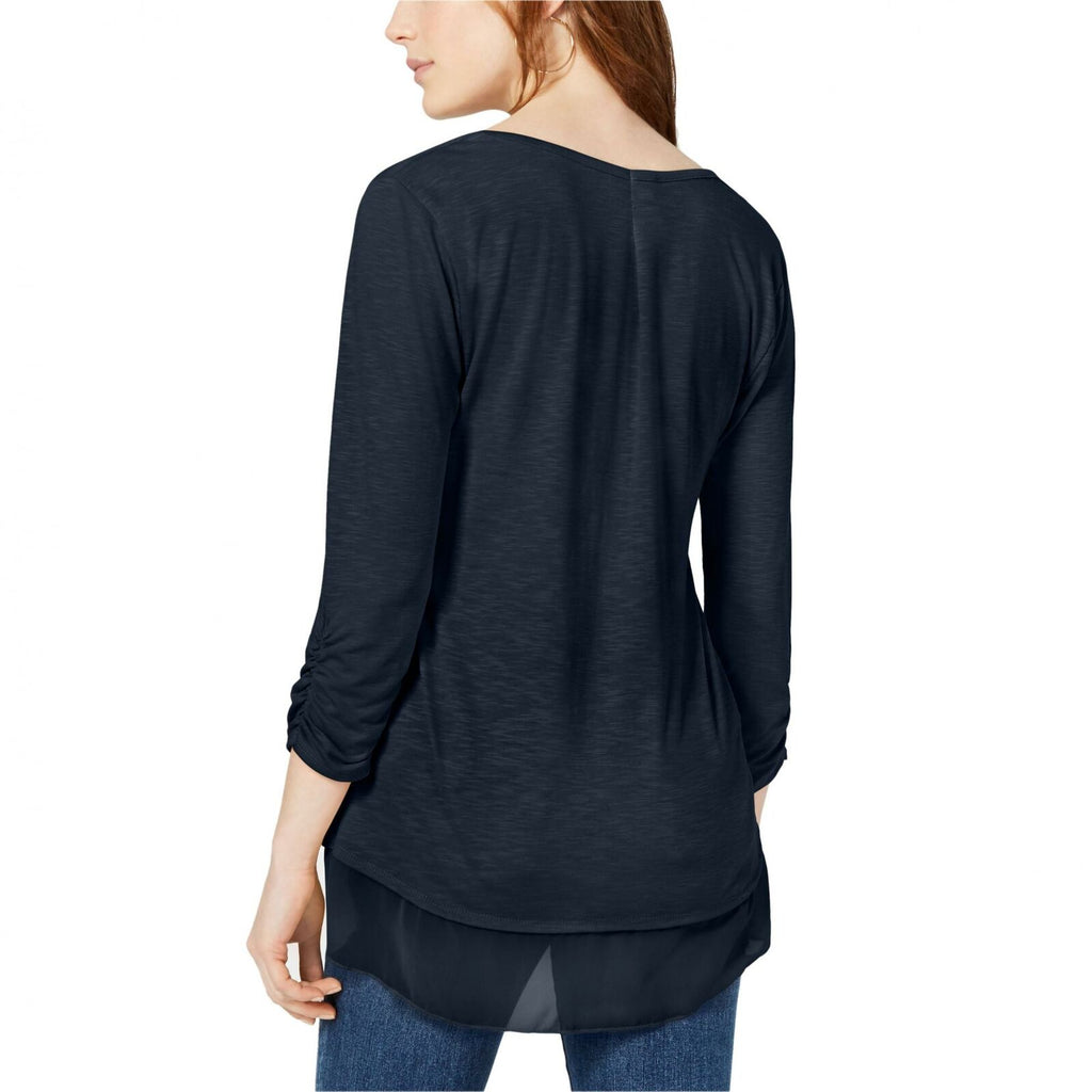 Style & Co. lends a chic update to the basic tee with ruched sleeves and a pretty chiffon hem.