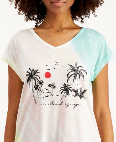 When a weekend escape is on your mind, turn to Style & Co's relaxed graphic T-shirt with a tie-dye print and cuffed sleeves.