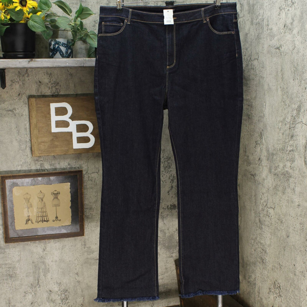 Take on the denim trend of the day with a little fray. These stretch denim jeans also sport a slight boot cut.