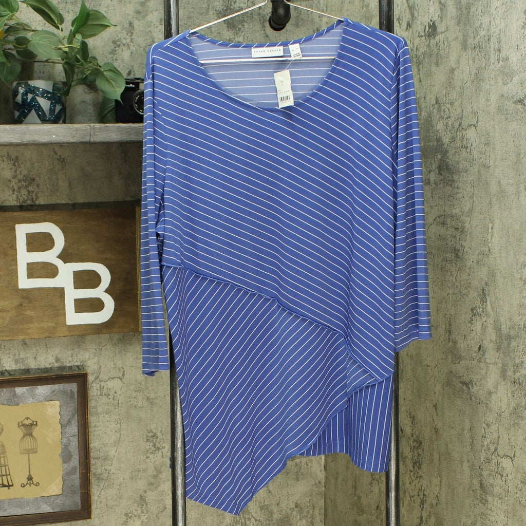 NWT Susan Graver Womens Striped Liquid Knit Asymmetrical Hem Top. A346365 XL