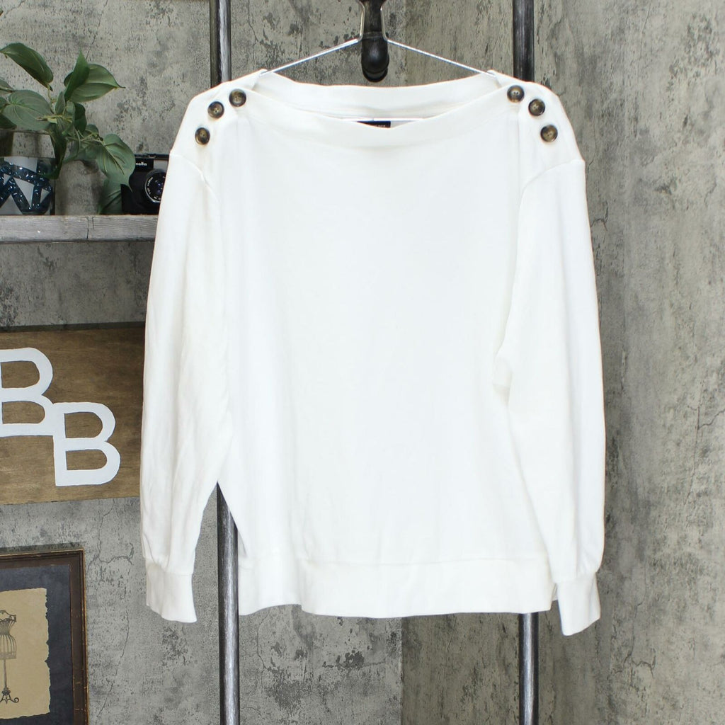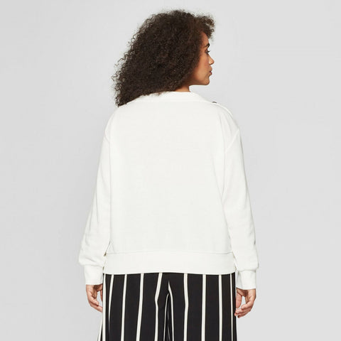 Your favorite sweatshirt just got even better because now you can wear it anywhere. The Button Detail Sweatshirt from Who What Wear transforms the weekend staple into a casual basic that s good to go with everything from a wide-leg trouser to a maxi skirt. Button embellishments at the shoulder add polish and visual interest, while subtle balloon sleeves give this classic silhouette a modern refresh. In two of our most-worn, most-loved colors choose your favorite or get one of each. You won t regret it.