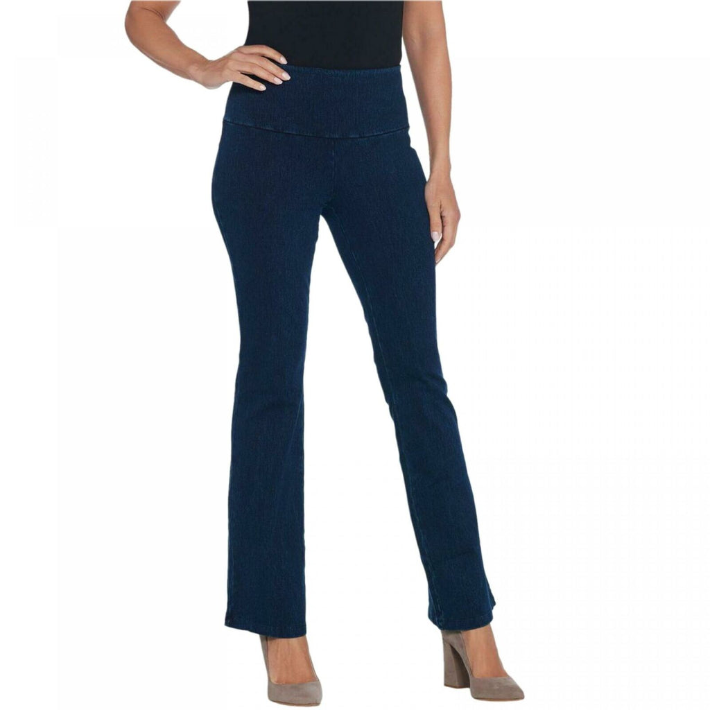 Look dynamite in denim. Offering a sleek silhouette, these pants have a Tummy Control with Blu-Tec Control System waistband that keeps everything in its place.