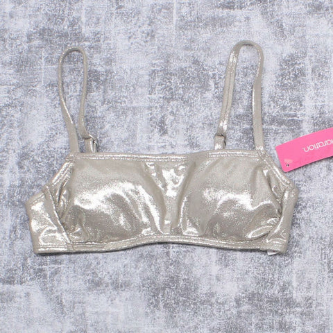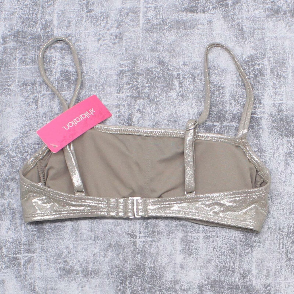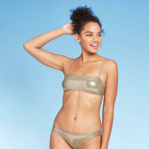 Take on any day at the beach or pool looking and feeling your best with this Bralette Bikini Top from Xhilaration. The bikini top is crafted from a soft fabric with a hint of spandex for ultimate comfort, and features shimmering metallic detailing for a chic, shiny look. The removable cups let you customize your coverage and shaping, while the adjustable shoulder straps and back closure make sure you get a secure, comfortable fit with every wear. Pair this metallic gold bikini top with colorful bikini bottoms for a vibrant look, or with coordinating bikini bottoms for sleek flair.