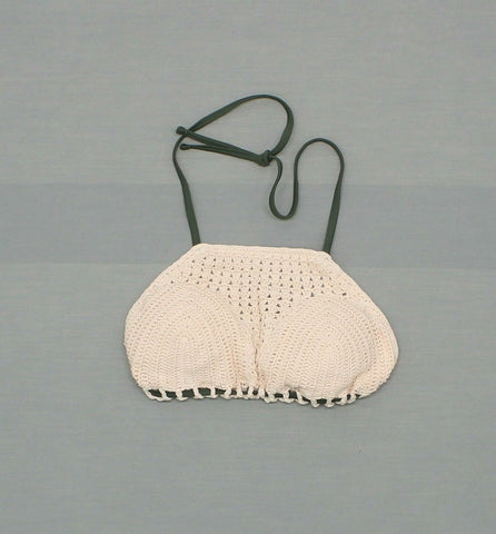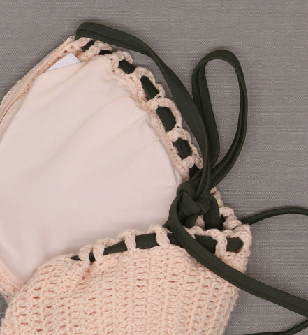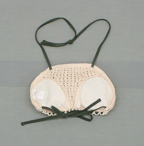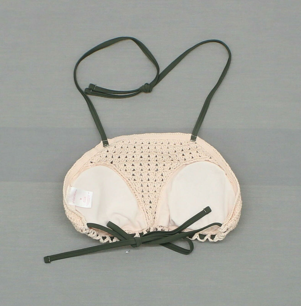 Be modern, yet bohemian in this Xhilaration crochet high neck halter bikini top. This top features one of a kind hand knit crochet with contrast string details. There are removable cups and a fully adjustable tie back closure.