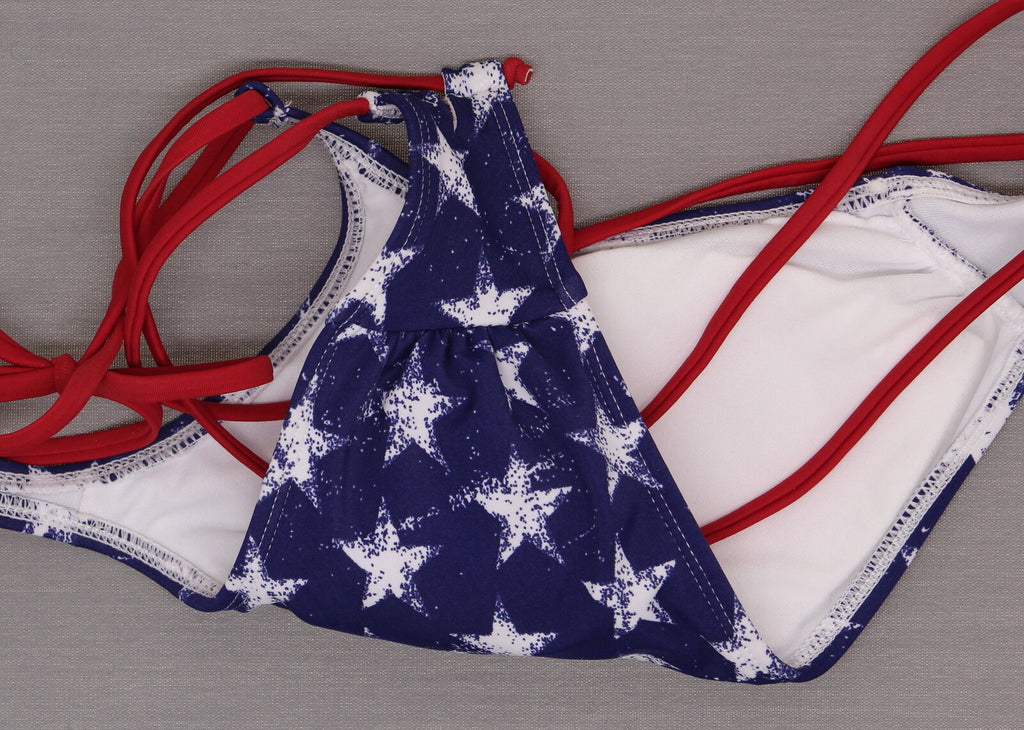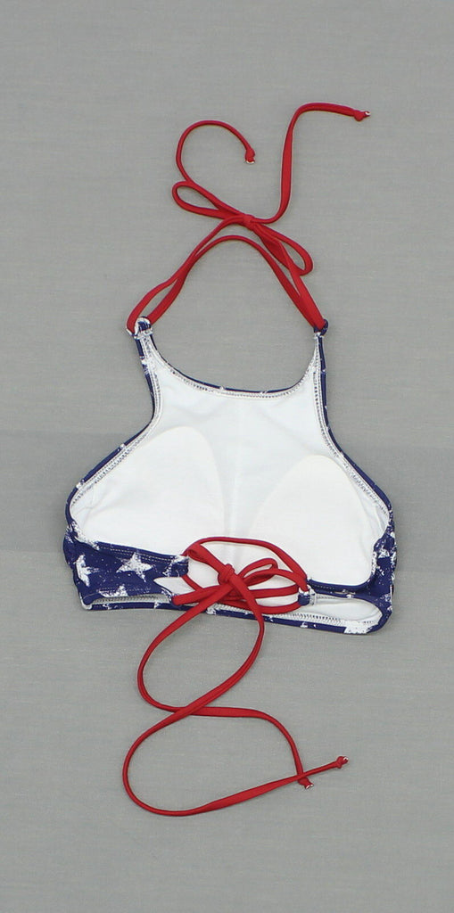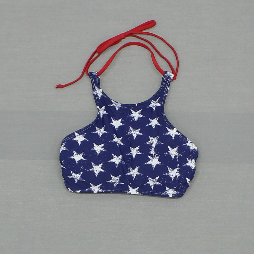 Turn heads with the gorgeous style of High-Neck Halter Bikini Top from Xhilaration. The high-neck design offers extra coverage, perfect for active days at the beach spent diving for volleyballs or just for relaxing on a chaise. The halter bikini top features lace-up detailing across the back, while also functioning as an adjustable tie to help you find the perfect fit with every wear. Perfect halter top to show off your Patriotic side on special holidays such as 4th Of July, Memorial Day & Veterans Day.