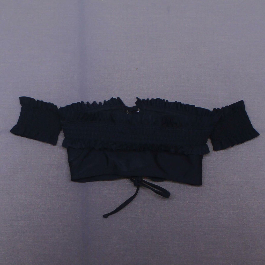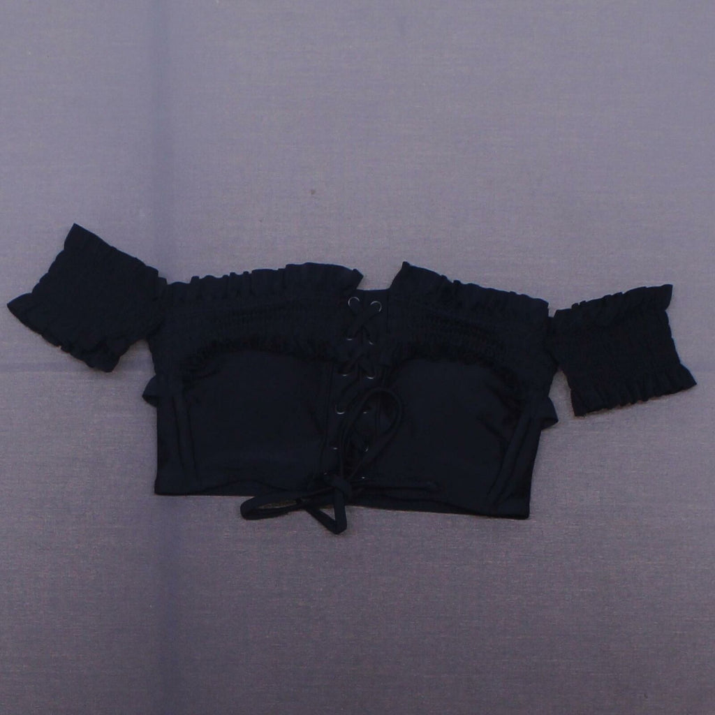 Xhilaration Women's Off The Shoulder Smocked Lace Up Bikini Top Black Small