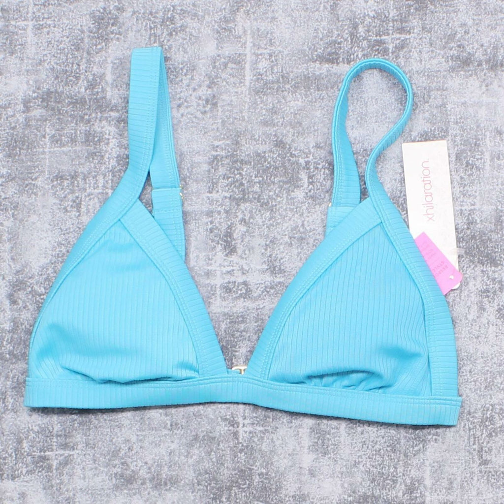 This bikini top has a classic triangle-cut silhouette, but provides a more secure fit by swapping out tie straps for traditional straps and a back-hook closure. The straps can be worn straight back or crossed to mix up your look, and the solid color of the top makes it easy to mix and match with any bottoms. Whether you pair it with coordinating or contrasting bikini bottoms from the Xhilaration sustainable swimwear line or with your favorite bottoms from your existing swimwear collection, this textured bikini top is sure to be a fave.