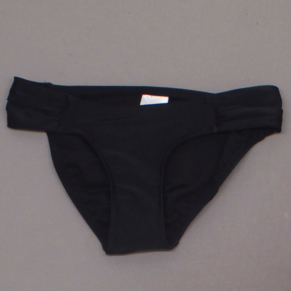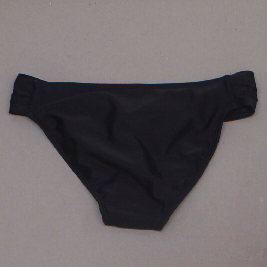 Get a flattering and versatile look with the Tab Hipster Bikini Bottom from Xhilaration. These black bikini bottoms have a low-rise cut accented by ruched straight sides to add a little texture and interest to the look. In chic and simple black, they pair well with matching, contrasting or patterned tops in almost any style basically doubling your swimsuit options! Whether you're after a good beach read or someone who can swim and snorkel all day long, these bottoms have what it takes.