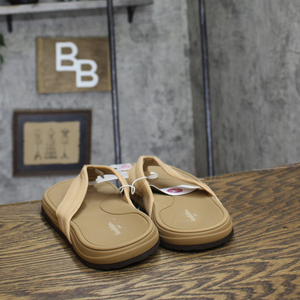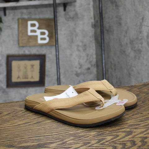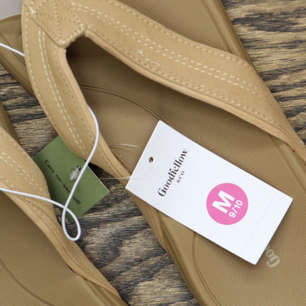 Lend cool appeal to your warm-weather outfits with these Ian Flip Flop Thong Sandals from Goodfellow & Co. These flip flop sandals feature a thong strap to help keep them in place on your feet. They have an open-toe front and back for an airy feel, while the slip-on style makes them easy to put on and take off.Goodfellow & Co: Where style & fit are always in good company. Flip flop sandals Thong strap Open toe and back Slip-on style Medium width Sizing: Mens Fabric Name: Faux Suede Care and Cleaning: Spot or Wipe Clean Footwear Lining Material: 100% Polyester Construction: Thong Strap Footwear Insole Material: 100% EVA (Ethylene Vinyl Acetate) Features: Slip On Toe Style: Round Toe Footwear Upper Material: 100% Polyurethane Footwear Outsole Material: 100% TPR (Thermoplastic Rubber) Heel: No Heel Shoe Width: Medium Footwear toe openness: Open Toe Footwear outsole details: Non Marking Outsole Battery: No Battery Used