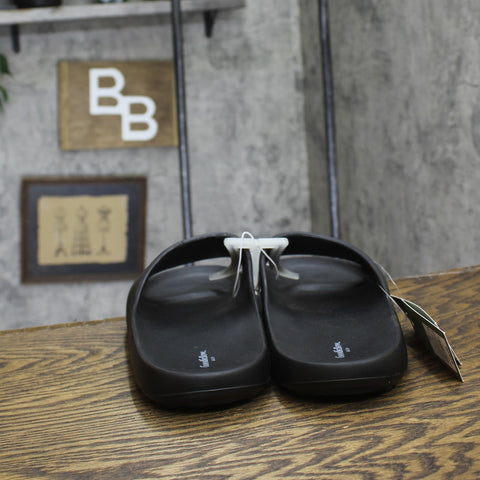 Upgrade your casual footwear collection with these Kendrix Slide Sandals from Goodfellow & Co. These slip-on slide sandals feature a contoured footbed for comfort, while a broad strap keeps them in place on your feet. With the open-toe design offering cool comfort and a versatile look that pairs perfectly with shorts or joggers, these slides make a great pick whether you're cleaning the backyard or heading to the beach. Slip-on slide sandals Contoured footbed construction Open D toe Backless Medium width Sizing: Mens Care and Cleaning: Avoid Extreme Heat Footwear Lining Material: 100% EVA (Ethylene Vinyl Acetate) Construction: Contoured Footbed Footwear Insole Material: 100% EVA (Ethylene Vinyl Acetate) Features: Slip On Toe Style: D Toe Footwear Upper Material: 100% EVA (Ethylene Vinyl Acetate) Footwear Outsole Material: 100% EVA (Ethylene Vinyl Acetate) Heel: Approximately 1.25 Inches No Heel Shoe Width: Medium Footwear toe openness: Open Toe Footwear outsole details: Textured Outsole