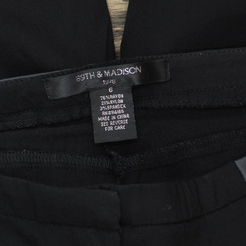 89th & Madison Womens Stretch Faux Leather Trim Dress Pants Black 6