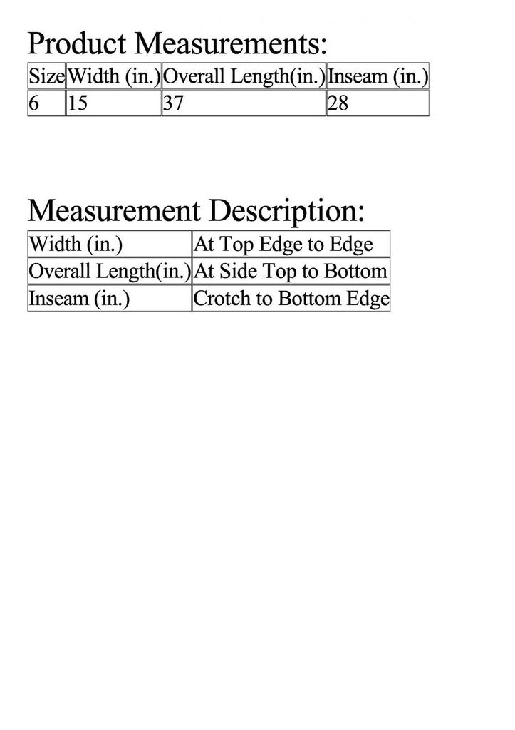 Size Width (in.) Overall Length(in.) Inseam (in.)