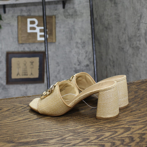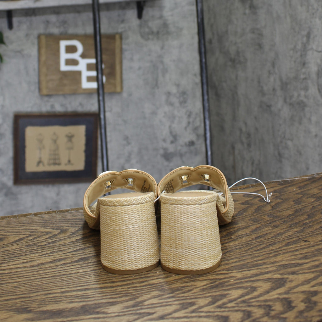 Bring a touch of glamour and sophistication to any occasion with these Arden Raffia Ornamented Block Heels from A New Day. These slip-on block heels are enhanced by a woven raffia detailing and ornamented top band for a standout look. Set on a 3.5-inch block heel for an elevated look, these raffia block heels feature a memory foam insole construction for comfortable wear. Pair these block heels with tailored trousers, skirts or dresses for a variety of statement looks. A New Day: Style that goes wherever you do.