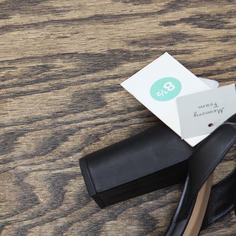 Whether you're getting ready for an office party or a night out with friends, these Sal Pumps from A New Day will help you create a statement look for all occasions. These women's heel sandals feature a single strap, and they're designed with four-inch block heels for a simple yet chic style. The slip-on style makes them easy to put on and take off, and the open design provides breezy comfort for your feet. Best of all, the solid hue makes these pumps easy to pair with a variety of outfits.A New Day: Style that goes wherever you do. Women's pumps with 4in heels Open design provides an airy feel Slip-on style for easy wear and removal Ankle length with a buckle closure for a secure fit Pair easily with your dressier outfits Sizing: Womens Care and Cleaning: Air Dry Footwear Lining Material: 100% Polyurethane Construction: Adjustable Buckle Strap Footwear Insole Material: 100% Latex Features: Buckle Toe Style: Square Toe Footwear Upper Material: 100% Polyurethane Footwear Outsole Material: 100% TPR (Thermoplastic Rubber) Heel: Approximately 4.0 Inches Block Heel Shoe Width: Medium Footwear toe openness: Open Toe Footwear outsole details: Non Marking Outsole