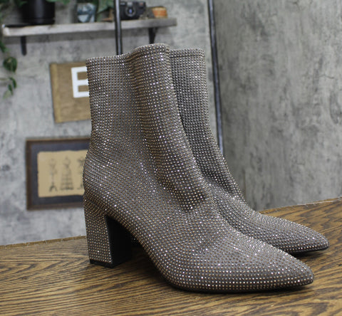 Make your fall fashion shine bright with these Cassidy Rhinestone Ankle Boots from A New Day. These silver boots are covered in sparkly, clear rhinestones and designed with a pointed closed toe and a 5.5-inch ankle height. Set on a 3.5-inch block heel also embellished with rhinestones, these ankle boots feature a cushioned insole and soft polyester lining for comfortable wear. A side zipper fastening completes the look and provides a snug, secure fit.A New Day: Style that goes wherever you do. Silver ankle boots embellished with rhinestones 3.5in block heel and 5.5in shaft height Cushioned insole and polyester lining Pointed closed toe Medium width Side zipper Textured TPR outsole Sizing: Womens Construction: Cushioned Insole Footwear Insole Material: 100% Polyurethane Features: Zipper Care and Cleaning: Clean With Mild Detergent Footwear Lining Material: 100% Polyester Toe Style: Pointed Toe Height Type: Ankle Footwear Upper Material: 60% Glass Beads and 40% Polyester Heel: Approximately 3.5 Inches Block Heel Footwear Outsole Material: 100% TPR (Thermoplastic Rubber) Boot Shaft Circumference: Approximately 9.0 Inches Boot Shaft Height: Approximately 5.5 Inches Shoe Width: Medium Footwear toe openness: Closed Toe Footwear outsole details: Textured Outsole