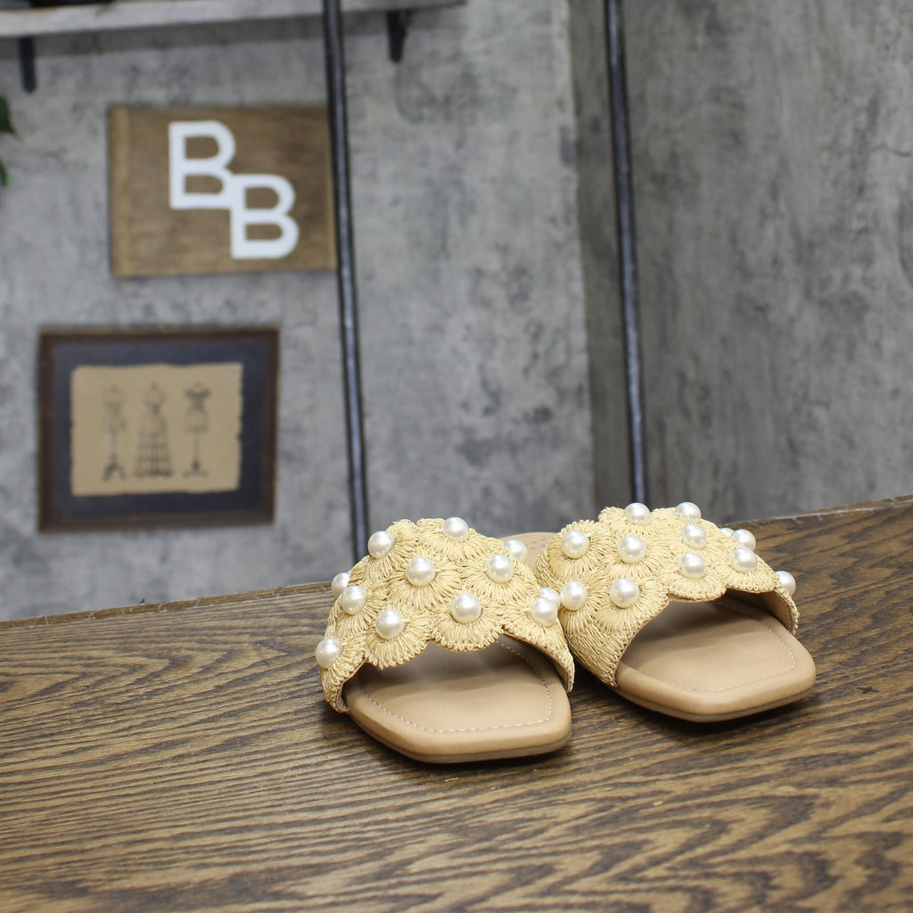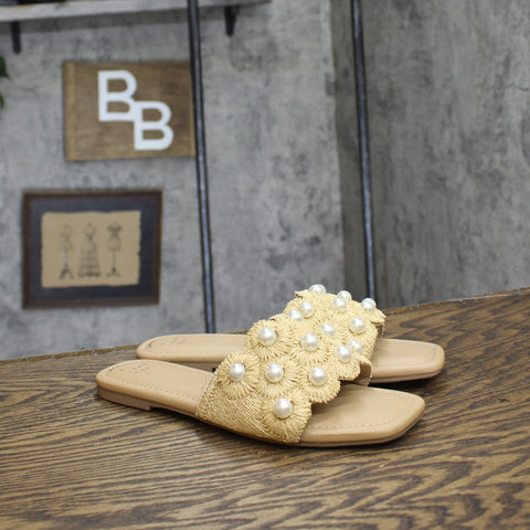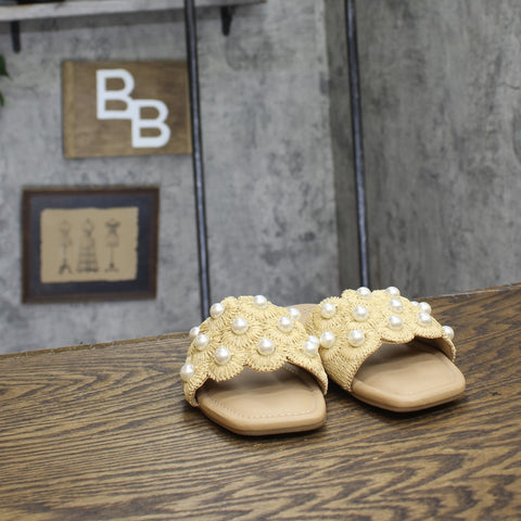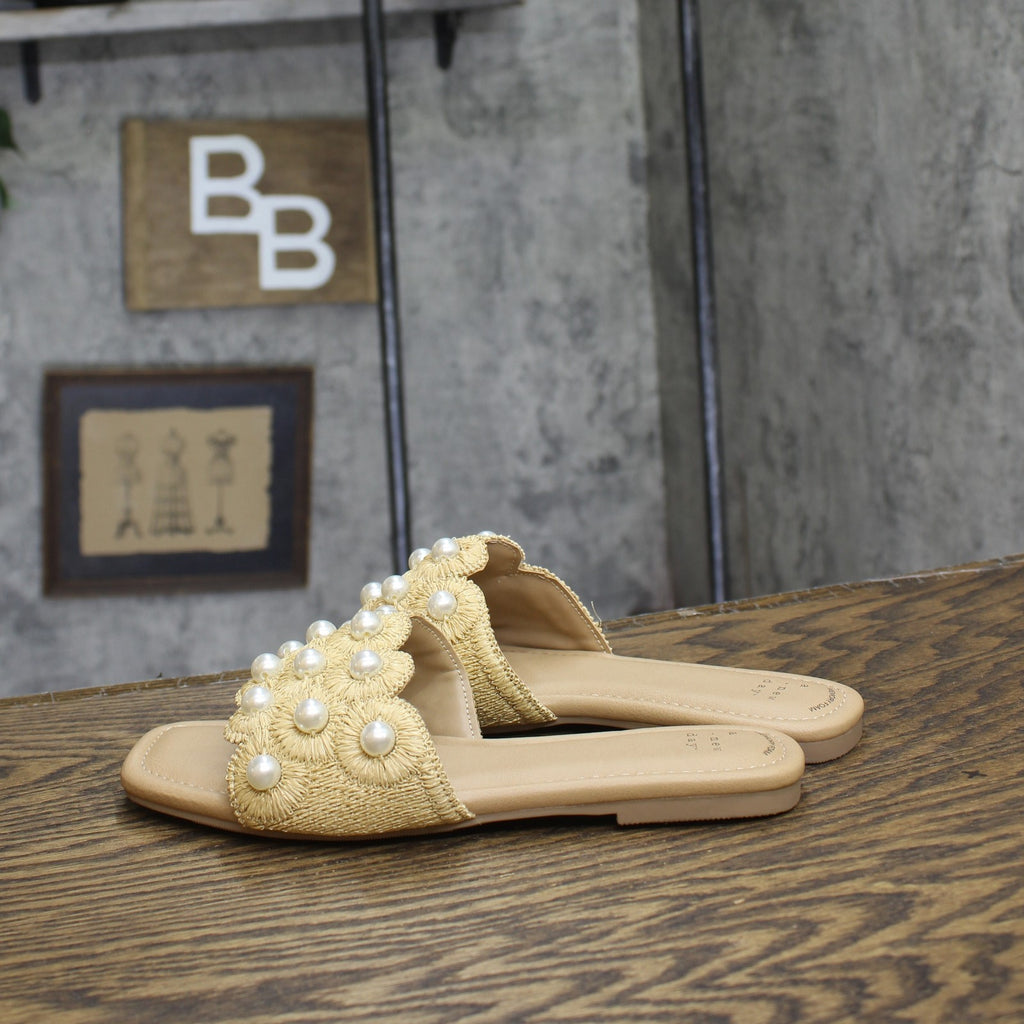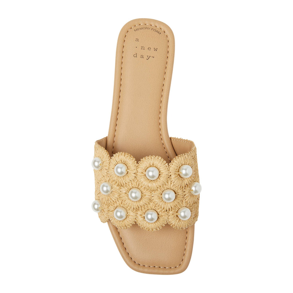 Enhance your casual looks with these Delaney Ornament Slide Sandals from A New Day. These slip-on slide sandals feature a stylish top band with ornament detailing for on-trend appeal. The soft memory foam insoles allow for comfortable walking, while a slip-on style makes them easy to wear. Pair them with a dress and floppy hat for brunch with friends, or with jeans and a button-down for a casual look that's perfect for any occasion.A New Day: Style that goes wherever you do. Delaney ornament slide sandals Memory foam insole Slip-on design Open round toe and back Medium width Sizing: Womens Care and Cleaning: Clean With Mild Detergent Footwear Lining Material: 100% Polyurethane Construction: Memory Foam Insole Footwear Insole Material: 100% Polyurethane Features: Slip On Toe Style: Round Toe Footwear Upper Material: 80% Raffia and 20% Plastic Footwear Outsole Material: 58% Polyester and 42% TPR (Thermoplastic Rubber) Heel: No Heel Shoe Width: Medium Footwear toe openness: Open Toe Footwear outsole details: Textured Outsole