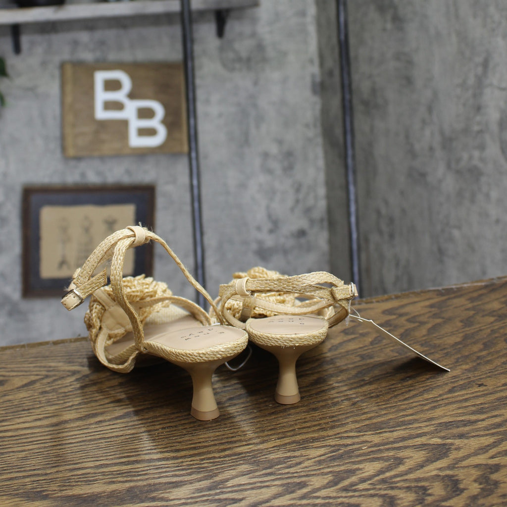 Step into effortless elegance from morning to night with these Esme Floral Crochet Kitten Heels from A New Day. These D-toe heels are designed with crocheted floral detailing on the straps for a standout look. They're set on two-inch Louis heels and boast an ankle buckle closure, providing a stylish lift to your height and a stay-put fit.A New Day: Style that goes wherever you do. Floral crochet kitten heels in tan 2in Louis heel Adjustable buckle strap closure Open D-toe Medium width Sizing: Womens Care and Cleaning: Clean With Mild Detergent Footwear Insole Material: 100% Polyurethane Features: Buckle Construction: Adjustable Buckle Strap Footwear Lining Material: 100% Polyurethane Toe Style: D Toe Footwear Upper Material: 98% Polyester and 2% Zinc Alloy Heel: Approximately 2.0 Inches Louis Heel Footwear Outsole Material: 57% Polyester and 43% TPR (Thermoplastic Rubber) Shoe Width: Medium Footwear toe openness: Open Toe Footwear outsole details: Textured Outsole