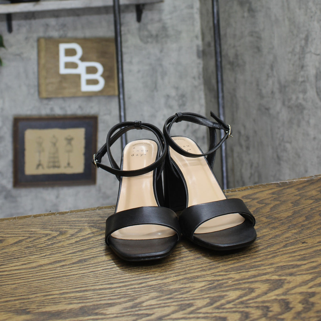 Add glamorous lift to your outfits with these Haley Ankle Strap Single Band Flare Heels from A New Day. These single-band flare heels feature a breathable open toe and back with an approximately 3.75-inch block heel for a statement lift to your height. Designed with cushioned memory foam insoles for comfortable walking, these block heels also have adjustable buckle straps for a snug, secure fit.A New Day: Style that goes wherever you do. Haley single-band flare heels 3.75in block heel Cushioned memory foam insole ̐ Open square toe Adjustable ankle strap closure Medium width Sizing: Womens Care and Cleaning: Air Dry Footwear Lining Material: 100% Polyurethane Features: Buckle Construction: Cushioned Insole, Memory Foam Insole Footwear Insole Material: 100% Foam Toe Style: Square Toe Heel: Approximately 3.75 Inches Block Heel Footwear Upper Material: 100% Polyurethane Footwear Outsole Material: 100% TPR (Thermoplastic Rubber) Shoe Width: Medium Footwear toe openness: Open Toe Footwear outsole details: Non Marking Outsole