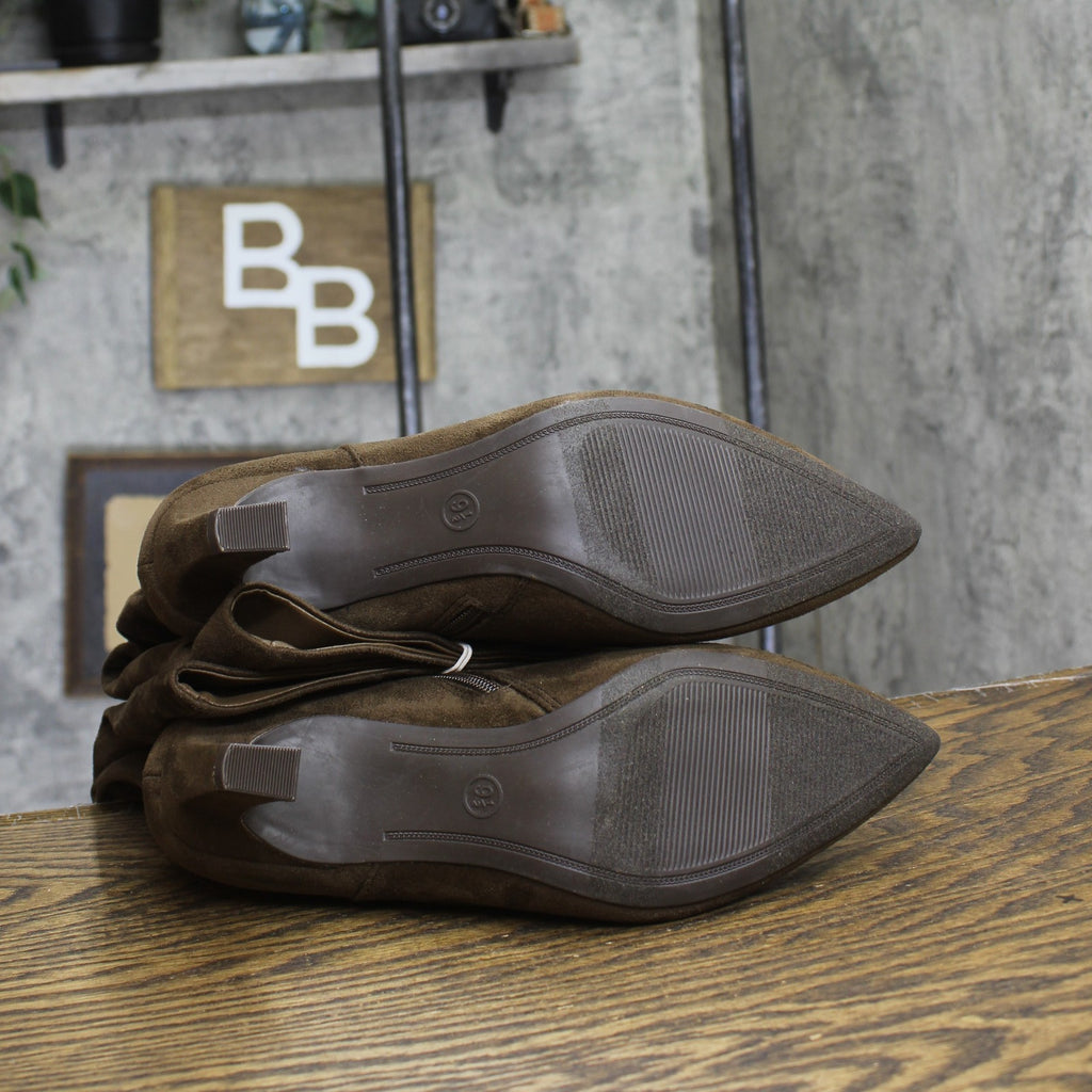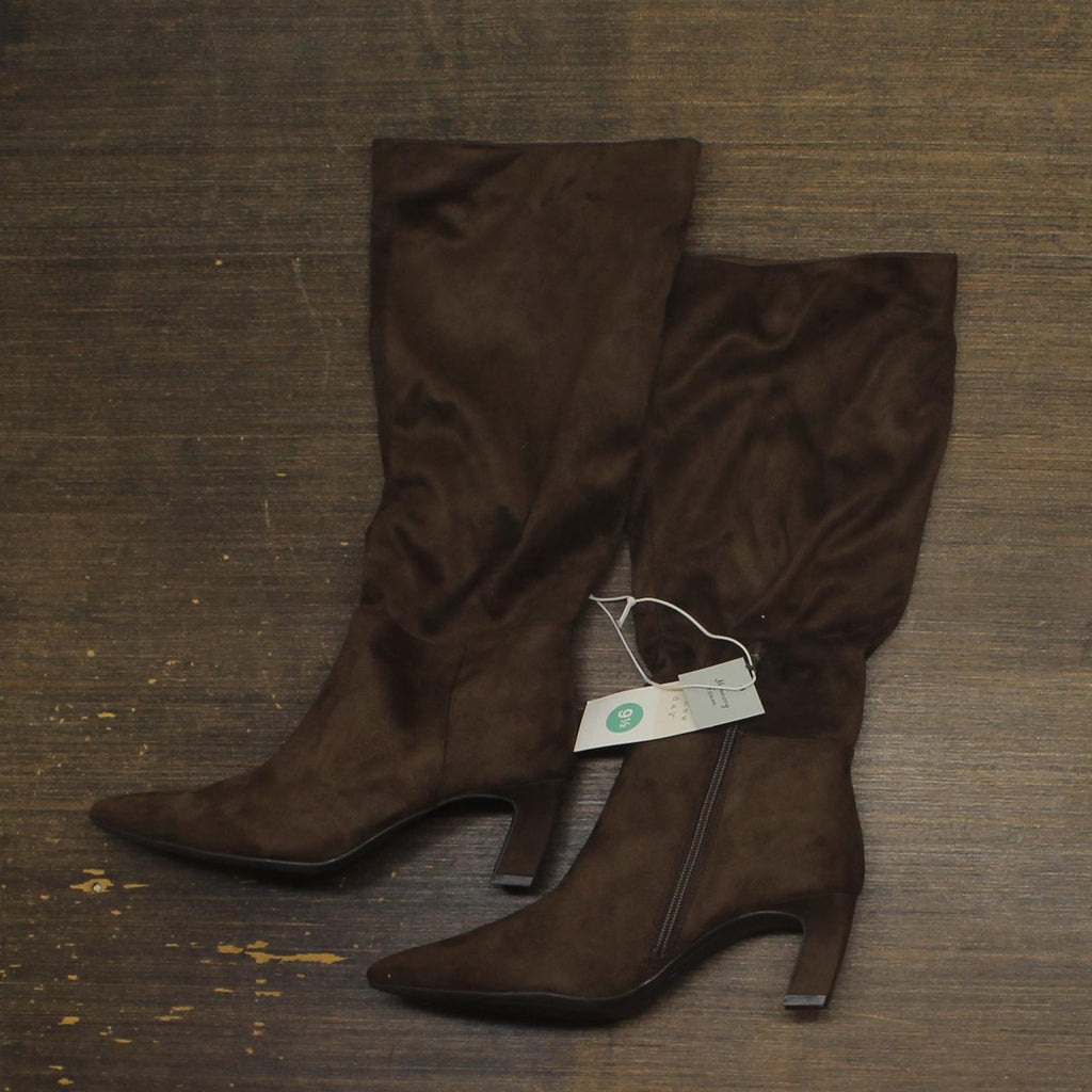 Elevate your cool-weather outfits with these Raye Tall Dress Boots from A New Day. These knee-length boots boast a cushioned insole and a breathable upper to keep you moving through any occasion in absolute comfort. Set on a 2.5-inch stiletto heel for a statement lift to your height, these dress boots have a side zipper for easy wear.A New Day: Style that goes wherever you do. Knee-length dress boots 2.5in stiletto heel Cushioned insole Pointed toe Side zipper closure Sizing: Womens Care and Cleaning: Clean With Mild Detergent Footwear Lining Material: 100% Polyester Construction: Cushioned Insole Footwear Insole Material: 100% Polyurethane Features: Zipper Height Type: Knee Toe Style: Pointed Toe Footwear Upper Material: 100% Polyester Footwear Outsole Material: 55% Polyester and 45% TPR (Thermoplastic Rubber) Heel: Approximately 2.5 Inches Stiletto Heel Boot Shaft Circumference: Approximately 15.0 Inches Boot Shaft Height: Approximately 15.0 Inches Shoe Width: Medium Footwear toe openness: Closed Toe Footwear outsole details: Flocked Outsole
