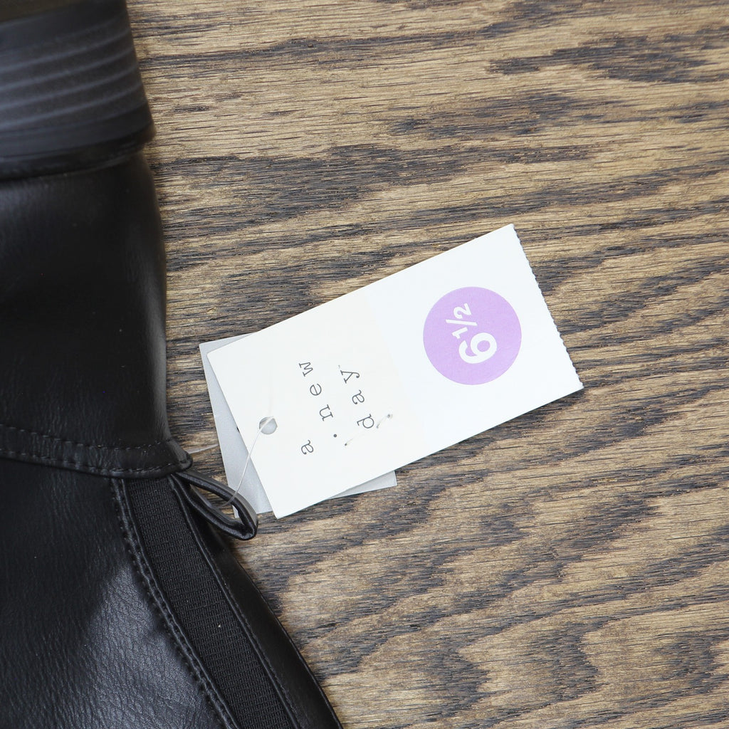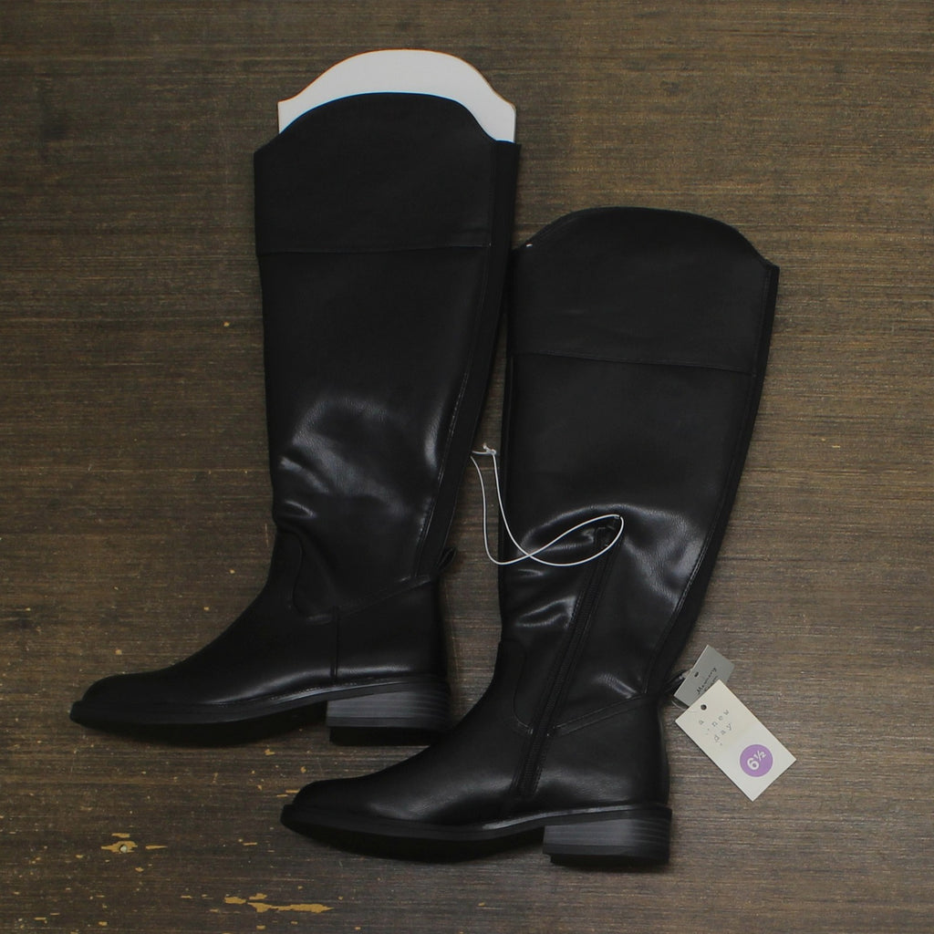 Elevate your cool-weather looks in sleek style with these Sienna Tall Dress Boots from A New Day. These knee-length boots will keep you comfy all day long thanks to their memory foam insole and cushioned insole construction, and the 1.5-inch roper heel adds a slight lift to your height. A side zipper closure allows for easier on and off, and the solid color pairs well with a variety of dresses, skirts and denim.A New Day: Style that goes wherever you do. Knee-length dress boots 1.5in roper heel Memory foam insole Round toe Side zipper closure Medium-width Sizing: Womens Care and Cleaning: Clean With Mild Detergent Footwear Lining Material: 100% Polyester Construction: Cushioned Insole, Memory Foam Insole Footwear Insole Material: 100% Polyurethane Features: Zipper Height Type: Knee Toe Style: Round Toe Footwear Upper Material: 93% Polyurethane and 7% Polyester Footwear Outsole Material: 100% TPR (Thermoplastic Rubber) Heel: Approximately 1.5 Inches Roper Heel Boot Shaft Circumference: Approximately 15.0 Inches Boot Shaft Height: Approximately 16.5 Inches Shoe Width: Medium Footwear toe openness: Closed Toe Footwear outsole details: Hard Outsole