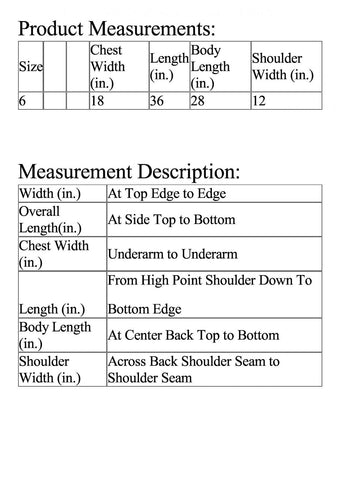 Size Chest Width (in.) Length (in.) Body Length (in.) Shoulder Width (in.)
