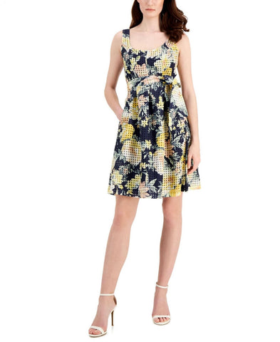 Styled in beautiful printed organza check fabric, Anne Klein's flattering fit-and-flare dress is chic from desk to dinner.