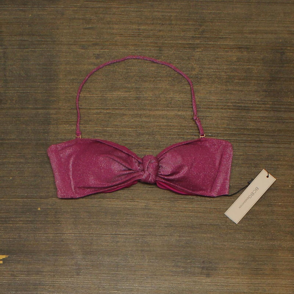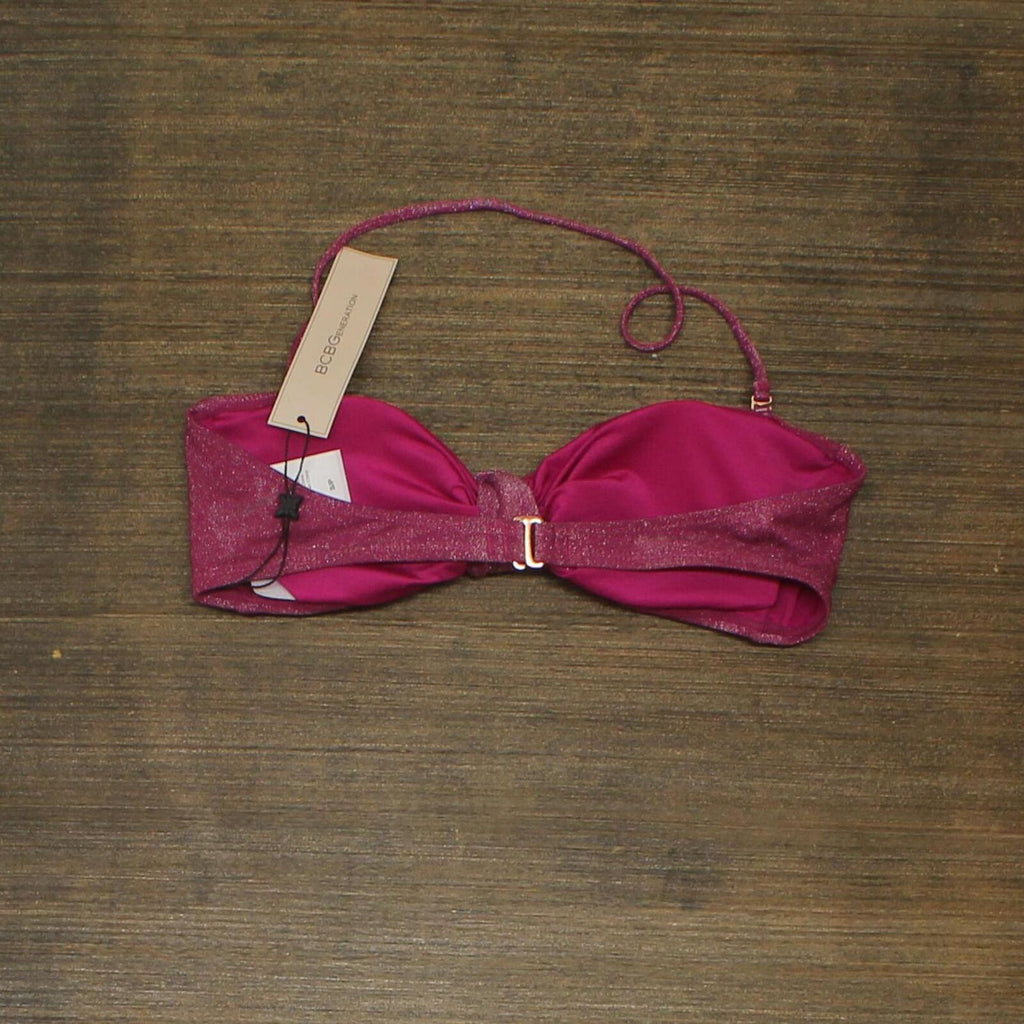 A stunning twist on a classic, this bandeau bikini top from BCBGeneration features glistening metallic accents punctuated with a knot between the bust. Lined