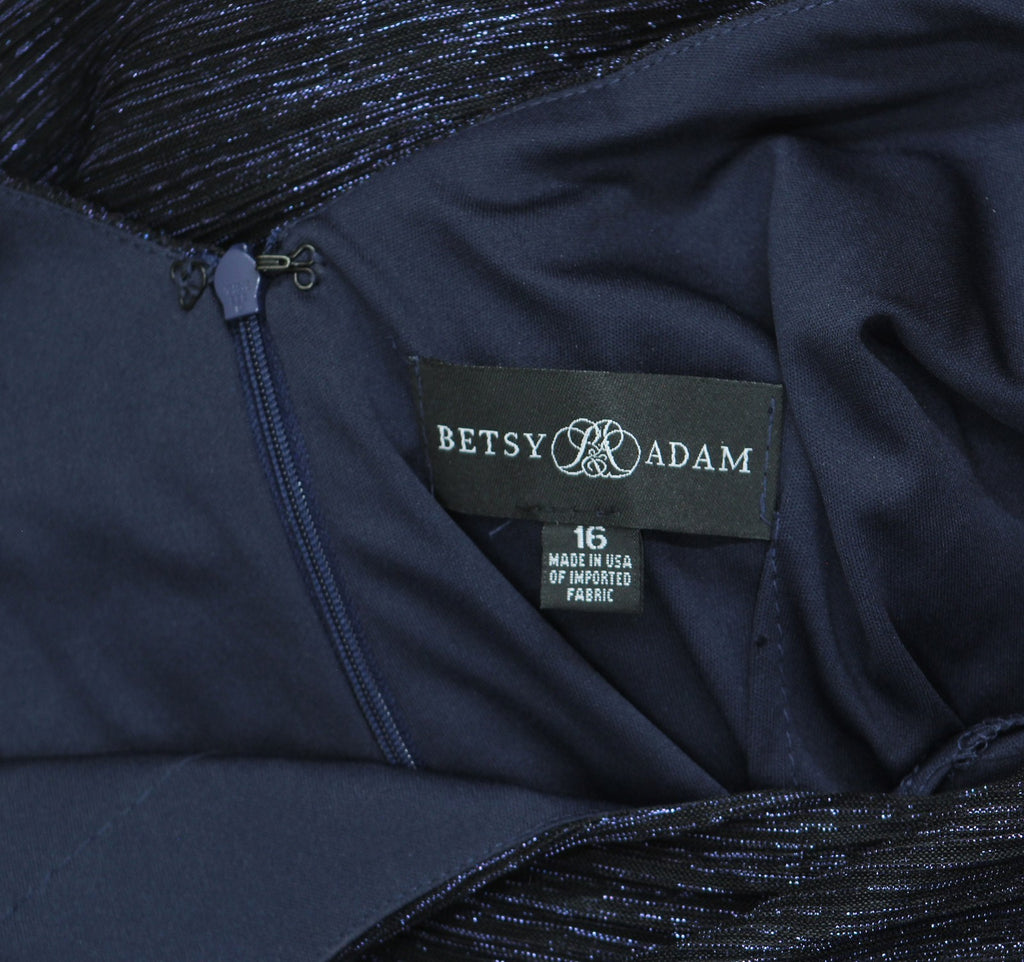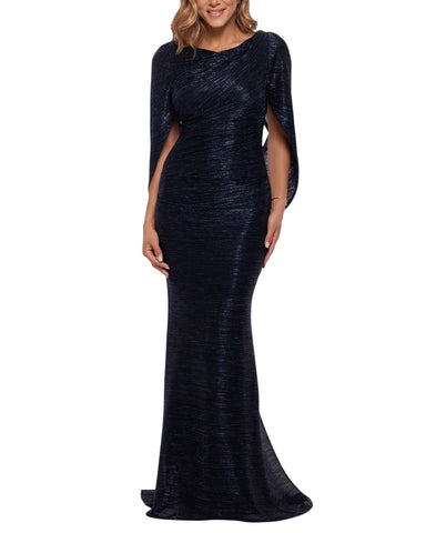 Betsy & Adam Womens Long Metallic Cape Gown Dress Evening Navy Blue / Royal 16