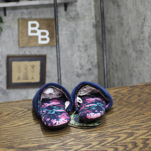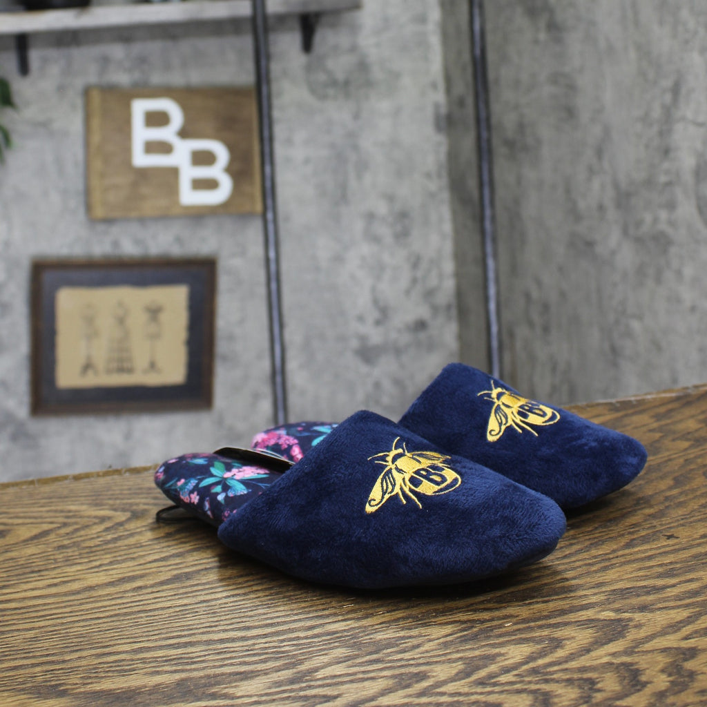 Enhance your lounging experience with the Women's Bridgerton Enchanting Bee Slippers Navy Blue. Inspired by Bridgerton, these lightweight slippers feature charming bee embroidery, floral prints and an easy slip-on style to ensure you lounge in comfort. With a low heel height and sturdy outsole, the women's Bridgerton enchanting bee slippers navy blue offer both stability and style. Women’s slippers in navy blue Features a bee embroidery and floral prints inspired by Bridgerton Lightweight design and round toe style ensure a snug fit Convenient slip-on design for wearability Sizing: Womens Care and Cleaning: Spot or Wipe Clean Footwear Lining Material: 100% Polyester Construction: Lightweight Design Footwear Insole Material: 100% Polyester Features: Slip On Toe Style: Round Toe Footwear Upper Material: 100% Polyester Footwear Outsole Material: 50% EVA (Ethylene Vinyl Acetate) and 50% Foam Heel: Approximately 0.0625 Inches No Heel Shoe Width: Medium Footwear toe openness: Closed Toe Footwear outsole details: Hard Outsole