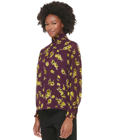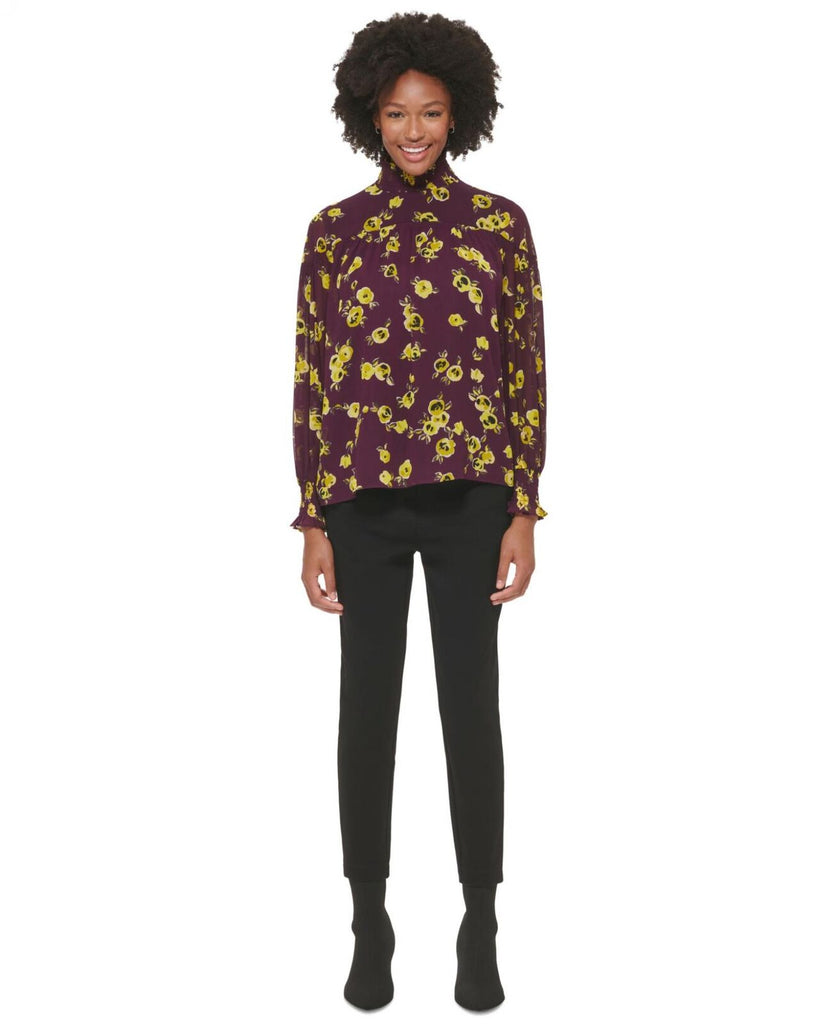Calvin Klein Womens High Neck Smocked Long Sleeve Blouse M2HAZ558