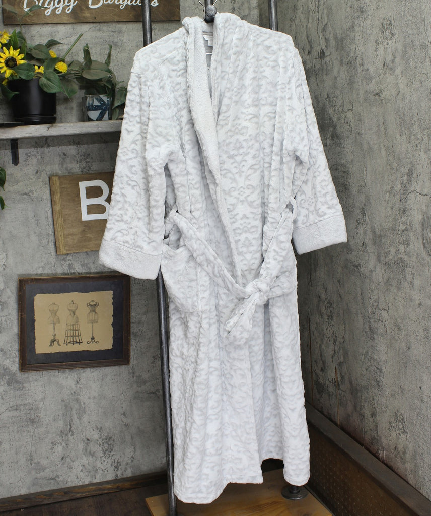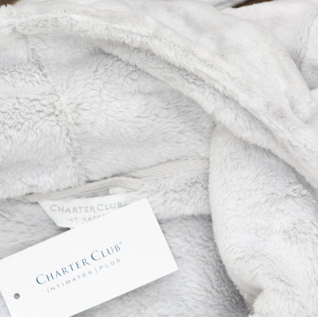 Charter Club Womens Plus Size Long Embossed Plush Robe 100192654WN Gray 1X