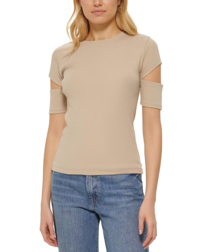 Sliced sleeves give this T-shirt from Dkny Jeans an alluring peekaboo effect.
