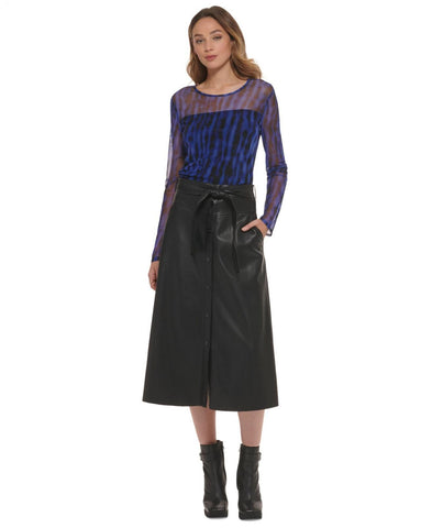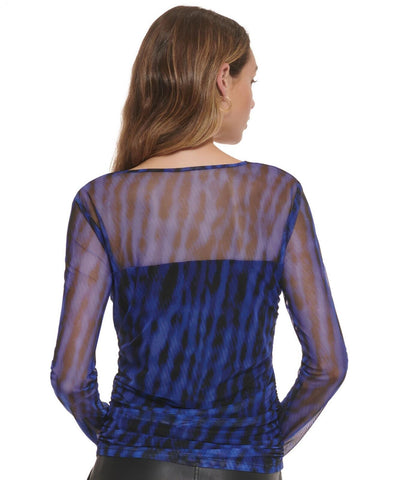 DKNY Women's Printed Mesh Knit Long-Sleeve Ruched Top P2JHVGPC