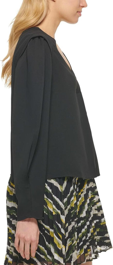 Subtly structured and billowed sleeves define this desk-to-dinner blouse cut to a waist-skimming length. V-neck Long sleeves 100% polyester Machine wash, tumble dry Imported