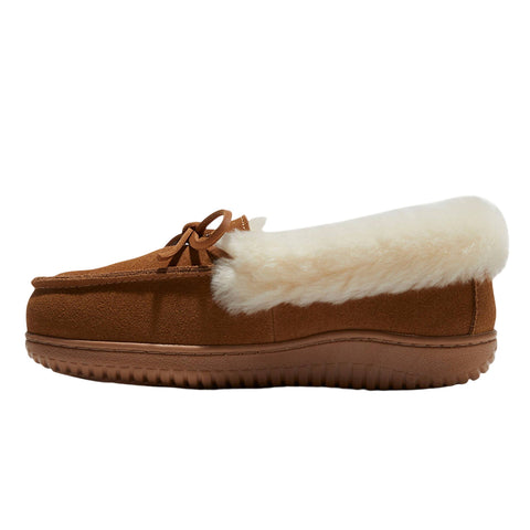 Meet the ultimate comfort combo. With genuine suede providing soft yet durable stability alongside genuine shearling's naturally moisture-wicking, all-over comfort, our Dluxe Helene Moccasins were crafted with constant support and coziness in mind. A pair of our tried-and-true memory foam insoles add an extra touch of cloudlike comfort and cushioning. GENUINE SUEDE: Equal parts durable and soft, these genuine suede slippers were made with long-lasting comfort in mind. NATURALLY MOISTURE WICKING: Keep your feet dry no matter the weather with naturally moisture wicking material. MEMORY FOAM: Our superior comfort memory foam insoles cradle your feet with every step. INDOOR/OUTDOOR DURABILITY: Relax wherever the day takes you with durable and convenient indoor/outdoor outsoles. GENUINE SHEARLING: Naturally moisture wicking and unbelievably soft, this unique material elevates a timeless style to new heights. Sizing: Womens Care and Cleaning: Wipe With Damp Cloth Footwear Lining Material: 100% Shearling Construction: Cushioned Insole Footwear Insole Material: 100% Shearling Features: Slip On Shoe Details: Decorative Bow, Contrast Trim Toe Style: Round Toe Footwear Upper Material: 100% Leather Footwear Outsole Material: 100% TPR (Thermoplastic Rubber) Heel: No Heel Shoe Width: Medium Footwear toe openness: Closed Toe Footwear outsole details: Indoor/Outdoor Outsole