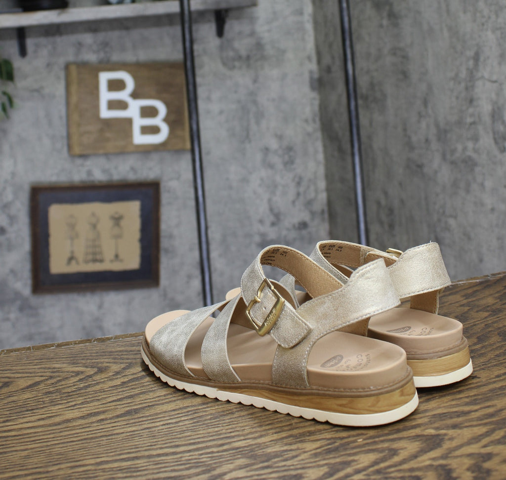SUSTAINABLY CRAFTED: A womens casual footbed sandal with soft linings made from low-chemical faux leather MATERIALS: A womens footbed sandal with faux leather straps FIT: A womens casual sandal with instep strap and adjustable buckle for a secure fit SUSTAINABLE COMFORT: Insole Technology with anatomical cushioning, comfort & support MOVEMENT: Lightweight, flexible construction moves with you STYLE: A womens strappy sandal with iconic buckle detail, contoured comfort footbed, and a slim 1 1/3 inch faux wood wedge heel with scalloped sole CONSCIOUSLY PACKAGED: This style is shipped in a box made with recyclable materials & soy-based inks GREAT FOR ALL OCCASIONS: Fashion casual sandals for women and women's slip on sandals are great for all occasions like walking, driving, daily dressing, outdoor, indoor, office, shopping, long standing, dress, walking and working Note : Kindly check and measure with Size Chart before selecting size