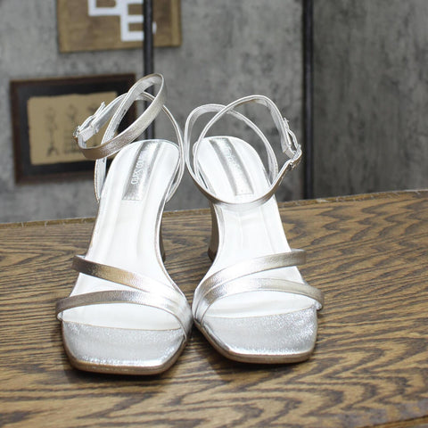 Franco Sarto Womens Franca Sandals Shoes I1117S2 Silver Faux Leather Gray 8M