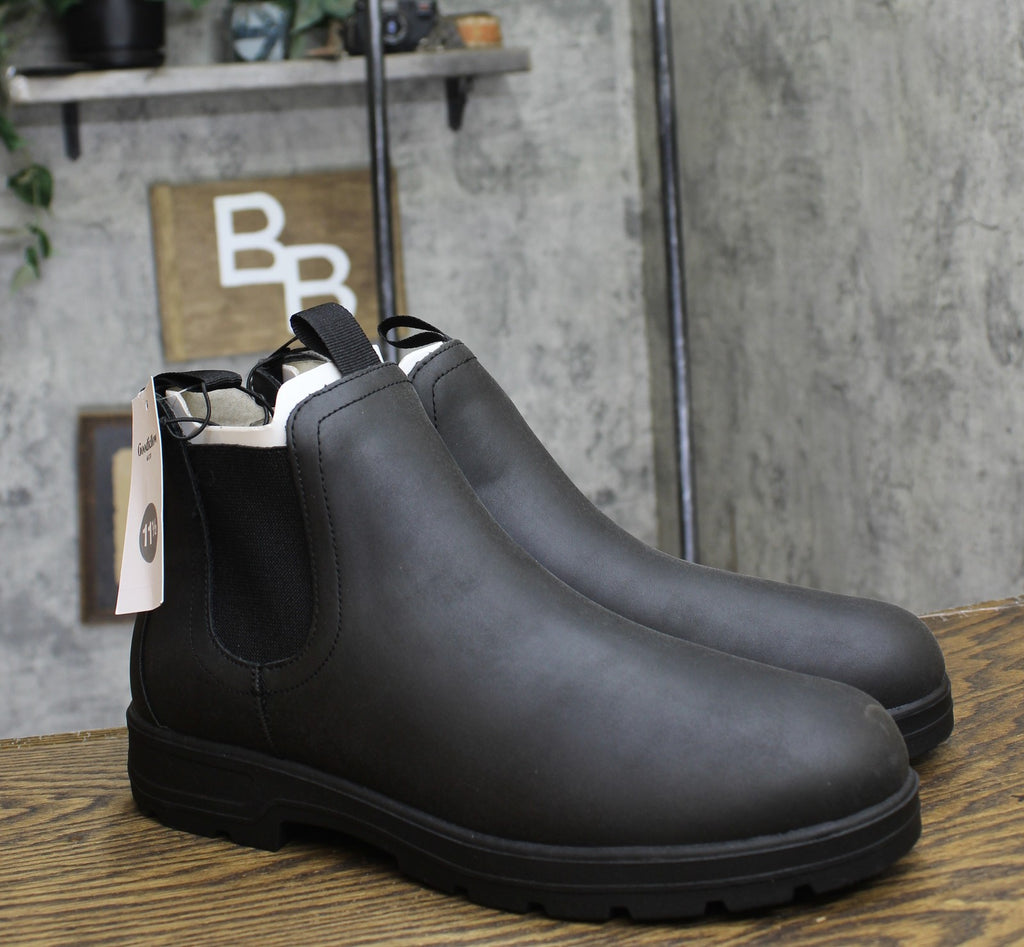 These Huxley Chelsea Boots from Goodfellow & Co are a perfect addition to your shoe wardrobe. The faux-leather design features a solid-color upper with a round closed toe, cushioned insole and medium width. Set on a TPR outsole, these mid-calf boots are equipped with distinct elastic panels on the sides, along with front and back pull tabs for a snug, secure fit. Experiment with different clothing combinations to showcase your unique style and make these Chelsea boots a versatile staple in your collection.Goodfellow & Co: Feel good in what you wear, anywhere. Faux-leather Chelsea boots in solid shade 4.5in shaft height Cushioned insole and polyester lining Closed round toe Elastic gores and pull tabs TPR outsole Sizing: Mens Construction: Cushioned Insole Footwear Insole Material: 100% Polyester Features: Pull-On Care and Cleaning: Spot or Wipe Clean Footwear Lining Material: 100% Polyester Fabric Name: Faux Leather Toe Style: Round Toe Height Type: Mid Calf Footwear Upper Material: 100% Polyurethane Heel: No Heel Footwear Outsole Material: 100% TPR (Thermoplastic Rubber) Boot Shaft Circumference: Approximately 11.0 Inches Boot Shaft Height: Approximately 4.5 Inches Shoe Width: Medium Footwear toe openness: Closed Toe Footwear outsole details: Non Marking Outsole Boot shaft width: Medium Calf Battery: No Battery Used