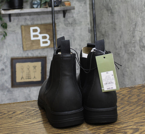 These Huxley Chelsea Boots from Goodfellow & Co are a perfect addition to your shoe wardrobe. The faux-leather design features a solid-color upper with a round closed toe, cushioned insole and medium width. Set on a TPR outsole, these mid-calf boots are equipped with distinct elastic panels on the sides, along with front and back pull tabs for a snug, secure fit. Experiment with different clothing combinations to showcase your unique style and make these Chelsea boots a versatile staple in your collection.Goodfellow & Co: Feel good in what you wear, anywhere. Faux-leather Chelsea boots in solid shade 4.5in shaft height Cushioned insole and polyester lining Closed round toe Elastic gores and pull tabs TPR outsole Sizing: Mens Construction: Cushioned Insole Footwear Insole Material: 100% Polyester Features: Pull-On Care and Cleaning: Spot or Wipe Clean Footwear Lining Material: 100% Polyester Fabric Name: Faux Leather Toe Style: Round Toe Height Type: Mid Calf Footwear Upper Material: 100% Polyurethane Heel: No Heel Footwear Outsole Material: 100% TPR (Thermoplastic Rubber) Boot Shaft Circumference: Approximately 11.0 Inches Boot Shaft Height: Approximately 4.5 Inches Shoe Width: Medium Footwear toe openness: Closed Toe Footwear outsole details: Non Marking Outsole Boot shaft width: Medium Calf Battery: No Battery Used