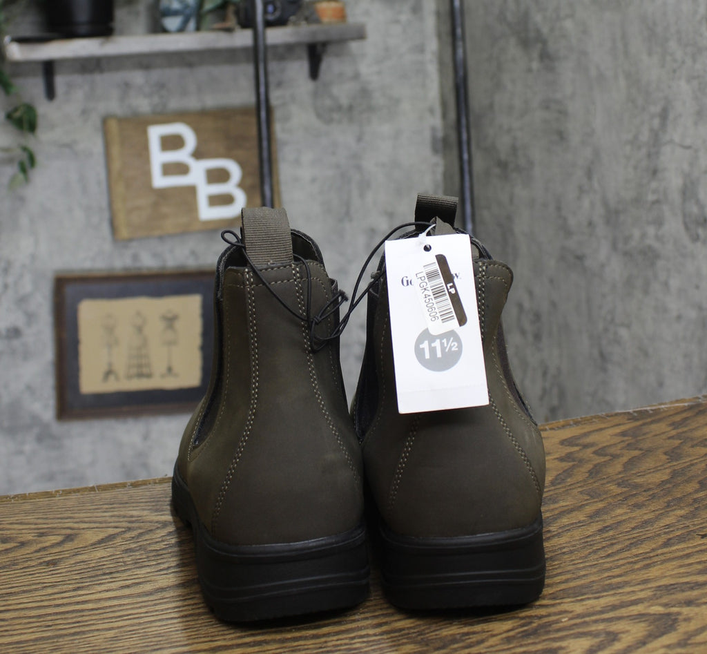 These Huxley Chelsea Boots from Goodfellow & Co are a perfect addition to your shoe wardrobe. The faux-leather design features a solid-color upper with a round closed toe, cushioned insole and medium width. Set on a TPR outsole, these mid-calf boots are equipped with distinct elastic panels on the sides, along with front and back pull tabs for a snug, secure fit. Experiment with different clothing combinations to showcase your unique style and make these Chelsea boots a versatile staple in your collection.Goodfellow & Co: Feel good in what you wear, anywhere. Faux-leather Chelsea boots in solid shade 4.5in shaft height Cushioned insole and polyester lining Closed round toe Elastic gores and pull tabs TPR outsole Sizing: Mens Construction: Cushioned Insole Footwear Insole Material: 100% Polyester Features: Pull-On Care and Cleaning: Spot or Wipe Clean Footwear Lining Material: 100% Polyester Fabric Name: Faux Leather Toe Style: Round Toe Height Type: Mid Calf Footwear Upper Material: 100% Polyurethane Heel: No Heel Footwear Outsole Material: 100% TPR (Thermoplastic Rubber) Boot Shaft Circumference: Approximately 11.0 Inches Boot Shaft Height: Approximately 4.5 Inches Shoe Width: Medium Footwear toe openness: Closed Toe Footwear outsole details: Non Marking Outsole Boot shaft width: Medium Calf Battery: No Battery Used