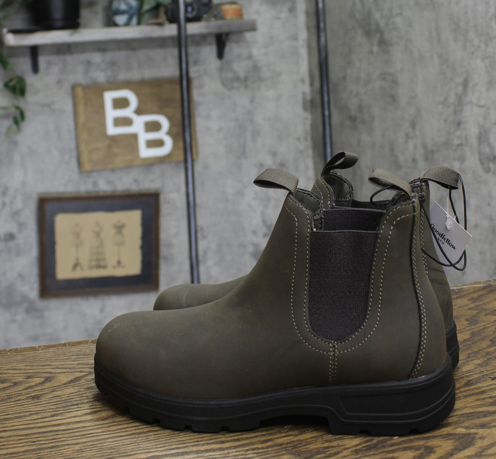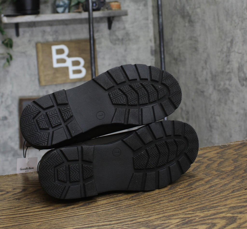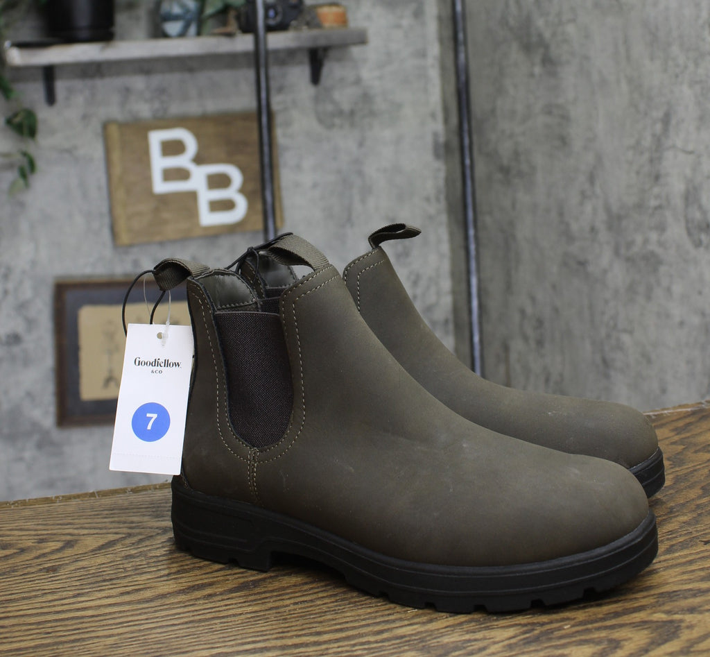 These Huxley Chelsea Boots from Goodfellow & Co are a perfect addition to your shoe wardrobe. The faux-leather design features a solid-color upper with a round closed toe, cushioned insole and medium width. Set on a TPR outsole, these mid-calf boots are equipped with distinct elastic panels on the sides, along with front and back pull tabs for a snug, secure fit. Experiment with different clothing combinations to showcase your unique style and make these Chelsea boots a versatile staple in your collection.Goodfellow & Co: Feel good in what you wear, anywhere. Faux-leather Chelsea boots in solid shade 4.5in shaft height Cushioned insole and polyester lining Closed round toe Elastic gores and pull tabs TPR outsole Sizing: Mens Construction: Cushioned Insole Footwear Insole Material: 100% Polyester Features: Pull-On Care and Cleaning: Spot or Wipe Clean Footwear Lining Material: 100% Polyester Fabric Name: Faux Leather Toe Style: Round Toe Height Type: Mid Calf Footwear Upper Material: 100% Polyurethane Heel: No Heel Footwear Outsole Material: 100% TPR (Thermoplastic Rubber) Boot Shaft Circumference: Approximately 11.0 Inches Boot Shaft Height: Approximately 4.5 Inches Shoe Width: Medium Footwear toe openness: Closed Toe Footwear outsole details: Non Marking Outsole Boot shaft width: Medium Calf Battery: No Battery Used