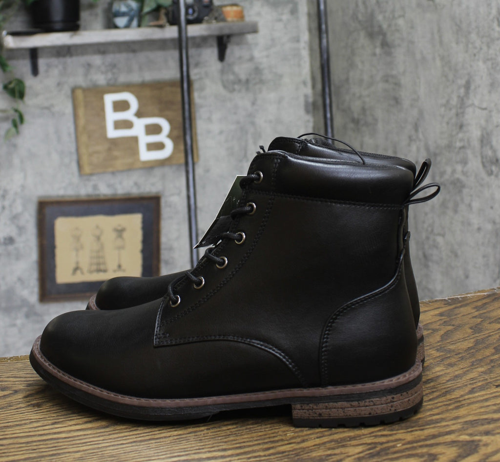 Give your casual outfit a stylish finishing touch with these Jeffrey Combat Boots from Goodfellow & Co. The medium-width combat boots are designed with a lace-up closure to give you a comfy fit, along with a pull-tab at the back for ease of wear. These mid-calf combat boots boast a breathable upper and padded collar for a comfy feel that's great for everything from running errands to enjoying a walk in the park. Goodfellow & Co: Where style & fit are always in good company. Mid-calf combat boots Breathable upper Features lace-up closure Closed-toe design Medium width Sizing: Mens Construction: Non Marking Sole Footwear Insole Material: 100% Polyester Features: Lace Up Care and Cleaning: Spot or Wipe Clean Footwear Lining Material: 100% Polyester Fabric Name: Faux Leather Toe Style: Round Toe Height Type: Mid Calf Footwear Upper Material: 100% Polyurethane Heel: Approximately 1.0 Inch Block Heel Footwear Outsole Material: 100% TPR (Thermoplastic Rubber) Boot Shaft Circumference: Approximately 10.0 Inches Boot Shaft Height: Approximately 5.5 Inches Shoe Width: Medium Footwear toe openness: Closed Toe Footwear outsole details: Non Marking Outsole Boot shaft width: Medium Calf Battery: No Battery Used