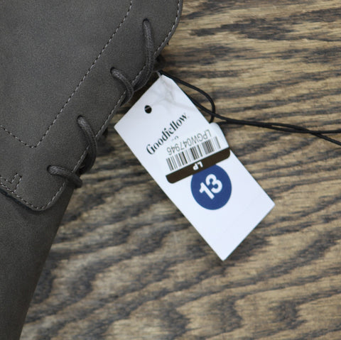 These Jerad Chukka Boots from Goodfellow & Co make a great pick, whether you're dressing for casual hangouts or a family event. The ankle closed-toe shoes with a textured upper with stitched detailing and a lace-up front are great for creating a sharp, stylish look. These medium-width shoes feature cushioned insole construction for enhanced comfort and are great for both special occasion and everyday wear.Goodfellow & Co: Where style & fit are always in good company. Ankle chukka boots Cushioned insole construction Features lace-up closure Closed-toe design Medium width Sizing: Mens Construction: Cushioned Insole Footwear Insole Material: 100% Polyester Features: Lace Up Care and Cleaning: Spot or Wipe Clean Footwear Lining Material: 100% Polyester Fabric Name: Faux Suede Toe Style: Round Toe Height Type: Ankle Footwear Upper Material: 100% Polyurethane Heel: Approximately 1.0 Inch Block Heel Footwear Outsole Material: 100% TPR (Thermoplastic Rubber) Boot Shaft Circumference: Approximately 10.0 Inches Boot Shaft Height: Approximately 3.5 Inches Shoe Width: Medium Footwear toe openness: Closed Toe Footwear outsole details: Non Marking Outsole Boot shaft width: Medium Calf Battery: No Battery Used