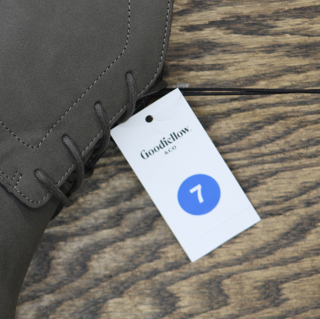 These Jerad Chukka Boots from Goodfellow & Co make a great pick, whether you're dressing for casual hangouts or a family event. The ankle closed-toe shoes with a textured upper with stitched detailing and a lace-up front are great for creating a sharp, stylish look. These medium-width shoes feature cushioned insole construction for enhanced comfort and are great for both special occasion and everyday wear.Goodfellow & Co: Where style & fit are always in good company. Ankle chukka boots Cushioned insole construction Features lace-up closure Closed-toe design Medium width Sizing: Mens Construction: Cushioned Insole Footwear Insole Material: 100% Polyester Features: Lace Up Care and Cleaning: Spot or Wipe Clean Footwear Lining Material: 100% Polyester Fabric Name: Faux Suede Toe Style: Round Toe Height Type: Ankle Footwear Upper Material: 100% Polyurethane Heel: Approximately 1.0 Inch Block Heel Footwear Outsole Material: 100% TPR (Thermoplastic Rubber) Boot Shaft Circumference: Approximately 10.0 Inches Boot Shaft Height: Approximately 3.5 Inches Shoe Width: Medium Footwear toe openness: Closed Toe Footwear outsole details: Non Marking Outsole Boot shaft width: Medium Calf Battery: No Battery Used