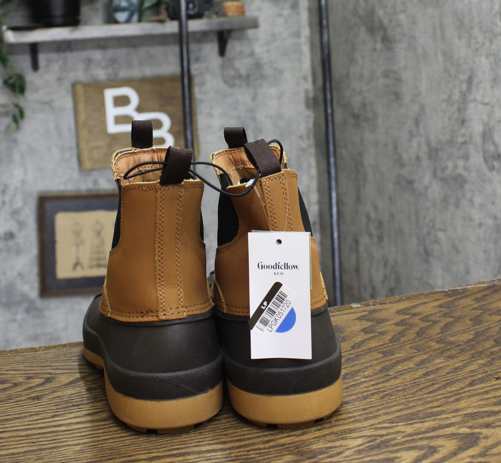 Sport a stylish look during cool-weather days with these Spencer Winter Chelsea Boots from Goodfellow & Co. These boots feature an almond-shaped closed toe with a textured upper for classy appeal. Designed with a non-marking outsole, these winter boots feature soft lining and a smooth upper to help keep your feet comfortable. Plus, with stretch panels and pull-on loops, they're easy to wear and remove.Goodfellow & Co: Feel good in what you wear, anywhere. Winter Chelsea boots Smooth upper and soft lining Non-marking outsole Closed almond toe Slip-on style Medium width Sizing: Mens Care and Cleaning: Brush Away Surface Dirt Footwear Insole Material: 20% Polyester and 80% EVA (Ethylene Vinyl Acetate) Features: Pull-On Construction: Non Marking Sole Footwear Lining Material: 90% Recycled Polyester and 10% Polyurethane Toe Style: Almond Toe Footwear Upper Material: 52% Leather and 10% Spandex and 38% TPR (Thermoplastic Rubber) Heel: No Heel Footwear Outsole Material: 100% TPR (Thermoplastic Rubber) Boot Shaft Circumference: Approximately 11.5 Inches Boot Shaft Height: Approximately 7.0 Inches Shoe Width: Medium Footwear toe openness: Closed Toe Footwear outsole details: Treaded Outsole