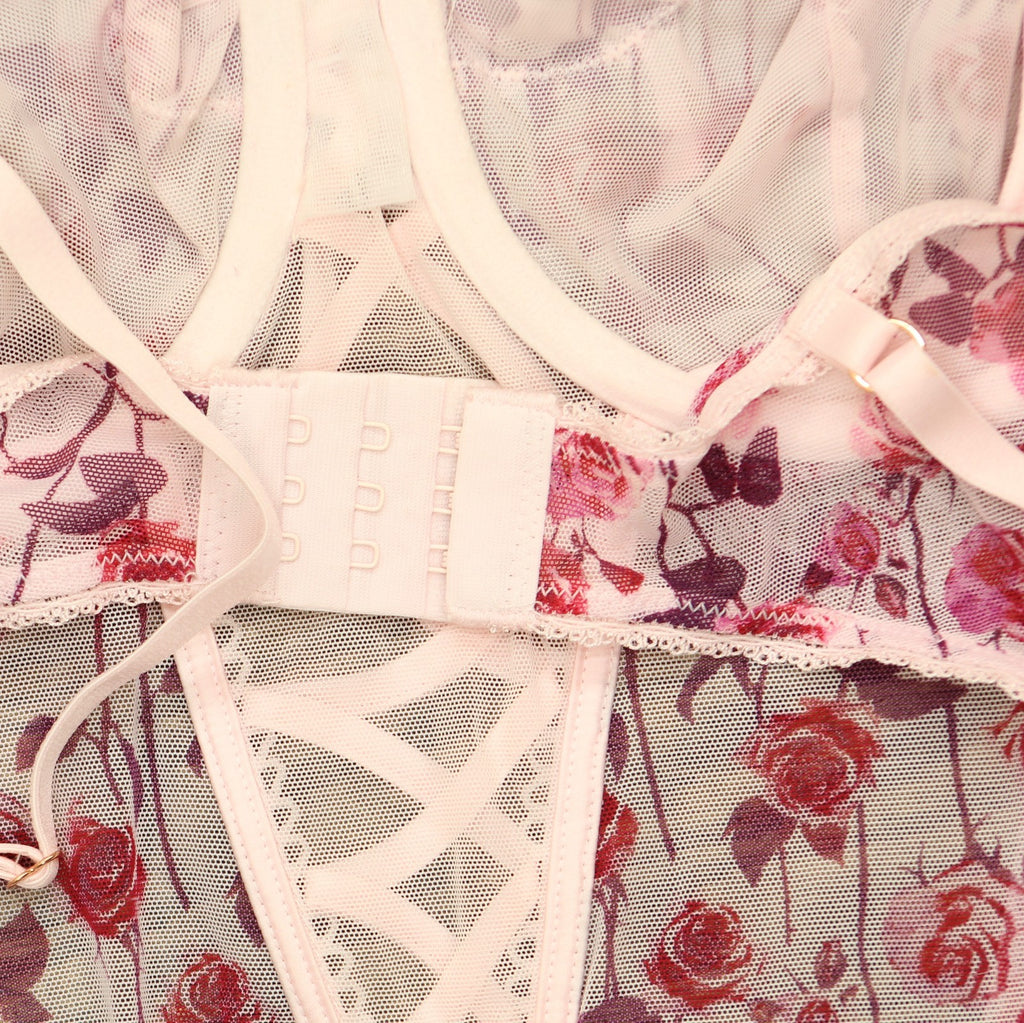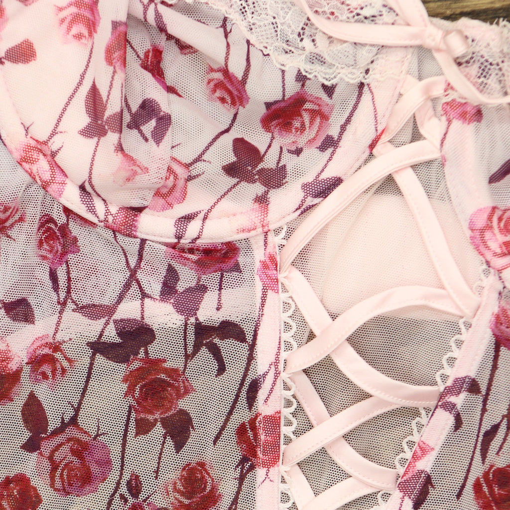 Inc International Concepts Womens Floral Mesh Thong Bodysuit Falling Roses L