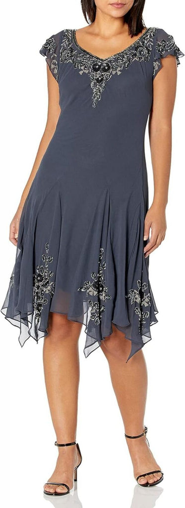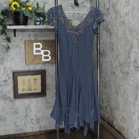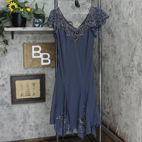 Condition: New with tagsFlutter Sleeve Hanky Hem Short Cocktail Beaded Dress